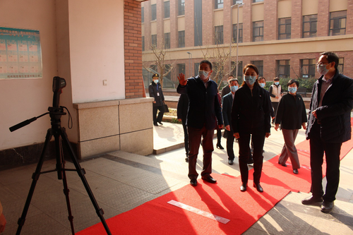 叶玉昆校长详细介绍了学校疫情防控工作进展情况、师生基本情况、应急预案建设及开学前准备工作情况等,并带领督查组实地查看了学校临时隔离室、防控物资贮备室、教室、餐厅、宿舍等重要场所。