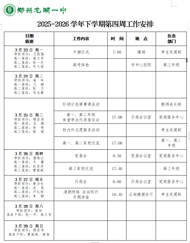 2025-2026学年下学期第四周工作安排